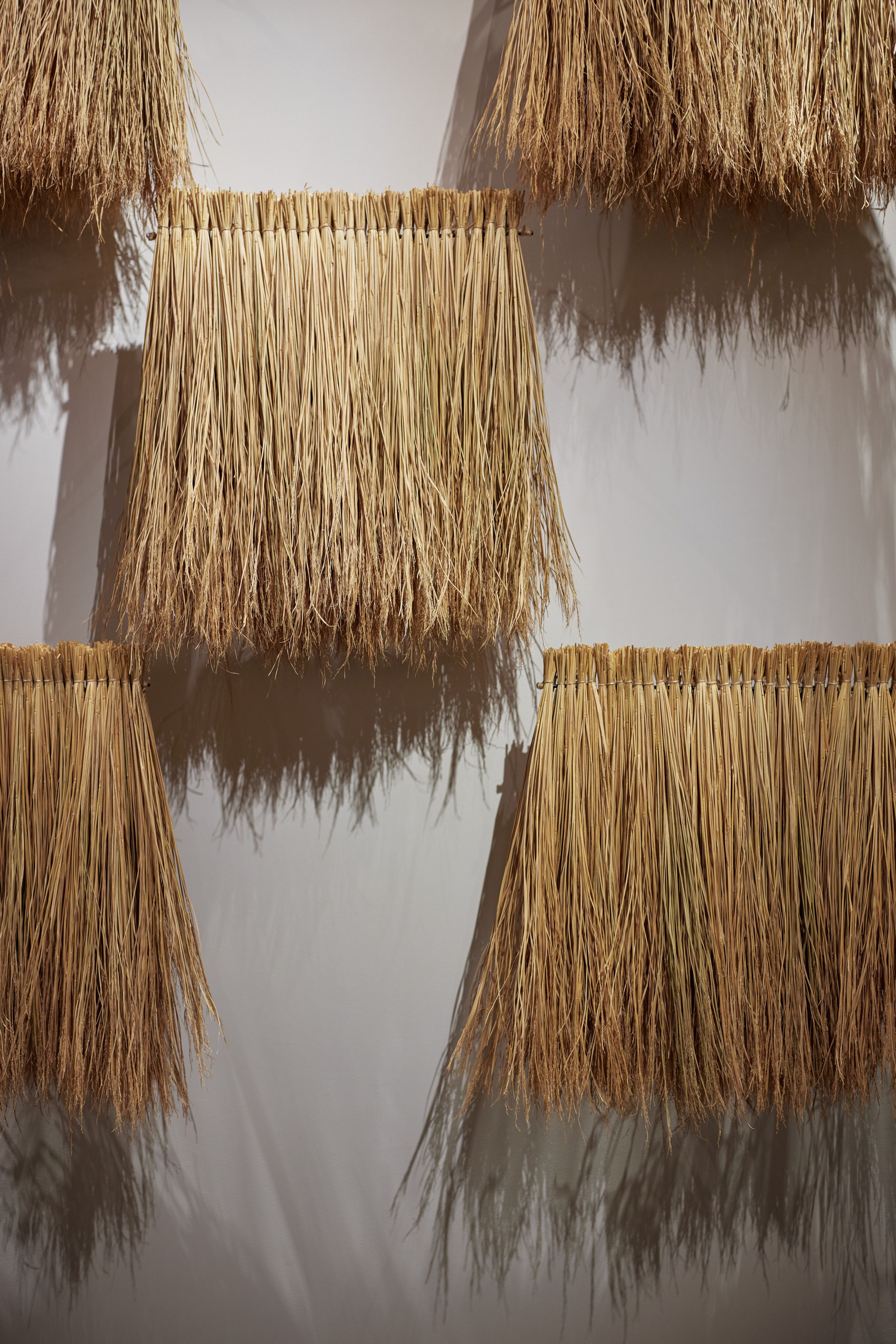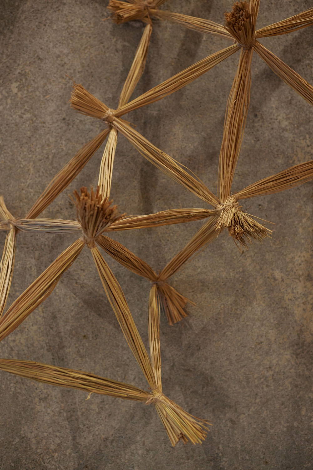 For this installation, geometric forms and lighting objects crafted from woven straw are integrated throughout the TRUNK(LOUNGE) space, highlighting the material’s rich texture and its interplay with the surrounding environment. The work also pays homage to Japanese craftsmanship, drawing inspiration from shimekazari - rice-straw decorations traditionally displayed during the New Year.